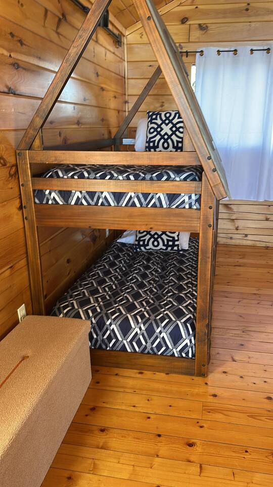 🏡 Rest and relax with an unobstructed view that can only be experience: - Wraparound glass walls overlooking the Smokies and downtown Gatlinburg, blending nature with city-lights - Sleeps 8 across 2 spacious queen suites (with attached full baths) and a king loft with twin bunks - Fully equipped kitchen with coffee bar, dining table, and plenty of dinnerware for adults and children - Charcoal grill located right outside front door (park style and bear proof) - Ample flat, free parking - Cozy gas fireplace in living room 🌅 Enjoy outdoor bliss with ample seating: - Balcony and decks on every level to enjoy the view - Spacious hot tub perfect for basking in the sunset - Rocking chairs for 6 (2 on balcony, 4 on main level deck, and 4 on lower deck next to hot tub) 🎮 Entertainment and extras: - 5 smart TVs: 65" in living room, 75" in game room, 43" in king suite, 40" in each queen suite - Pool table, bean bag toss, and plenty of board games - High-speed internet - Washer and dryer on main level - Pack and play for little ones 🛏 Sleeping arrangements: - Upstairs king loft with twin bunks, jetted tub, en suite bath (shower), and private balcony - Lower level 2 queen suites with en suite baths (showers) 🚗 Prime location in coveted Chalet Village: - 1 mile to Ober Mountain Tramway (tram straight into downtown Gatlinburg) and Indoor/Outdoor Amusement Park - Access to 3 clubhouses: Upper Alpine, North, South Baden - Within 1 mile (*some are seasonal*): 3 swimming pools (Memorial Day to Labor Day), fitness facilities, tennis courts, playground, concession stand, foosball, video games, air hockey, shuffle board, shopping, dining, rides, indoor ice skating, ice bumper cars, winter tubing and skiing, alpine slide, mountain coaster, carousel, rock wall 🐾 Dog-friendly: Up to 2 well-behaved dogs allowed with a $215 fee (please ensure pets are added to the reservation when booking)